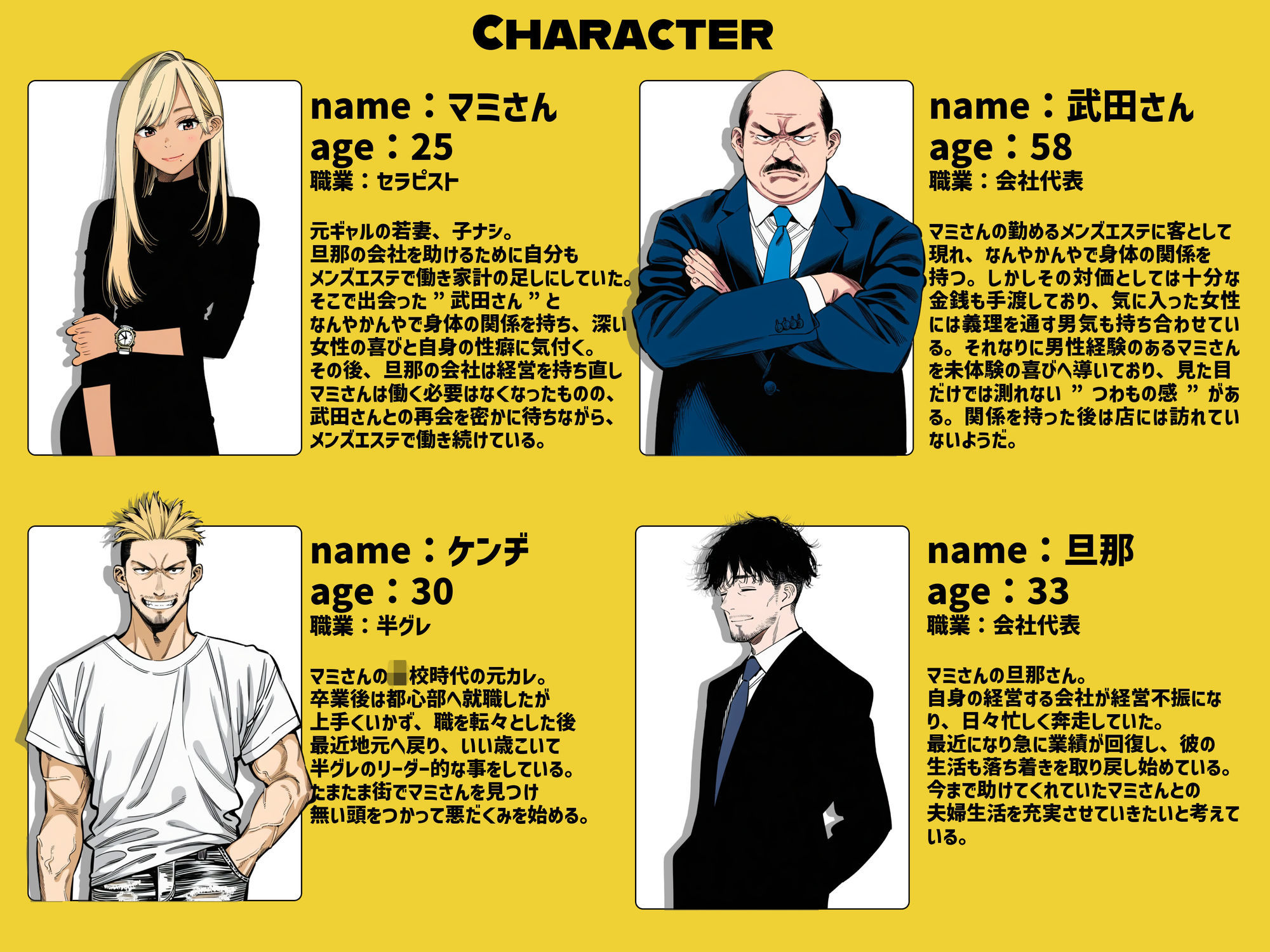登場人物紹介:愛と欲に翻弄される三人の男女